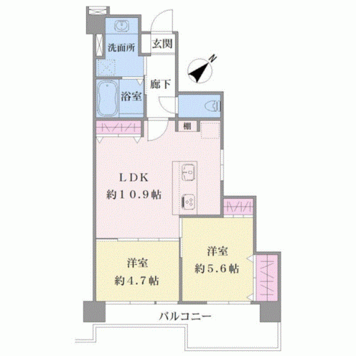 間取り 2LDK 専有面積 50.83m2(15.3坪) 壁芯