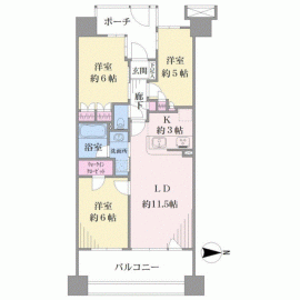 間取り 3LDK 専有面積 64.86m2(19.6坪) 壁芯