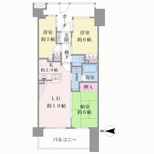 間取り 3LDK 専有面積 61.94m2(18.7坪) 壁芯