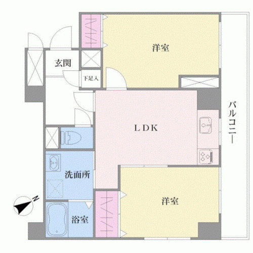 間取り 2LDK 専有面積 53.09m2(16.0坪) 壁芯