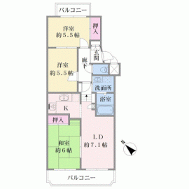 間取り 3LDK 専有面積 63.94m2(19.3坪) 壁芯