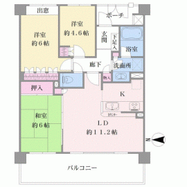 間取り 3LDK 専有面積 68.19m2(20.6坪) 壁芯