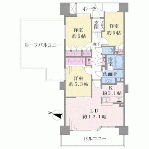 間取り 3LDK 専有面積 71.20m2(21.5坪) 壁芯