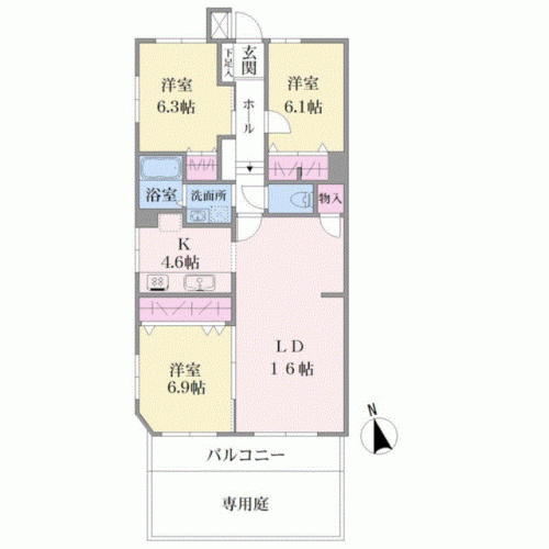 間取り 3LDK 専有面積 88.42m2(26.7坪) 壁芯