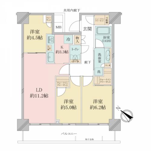間取り 3LDK 専有面積 71.43m2(21.6坪) 壁芯