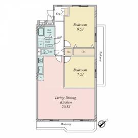間取り 2LDK 専有面積 74.91m2(22.6坪) 壁芯