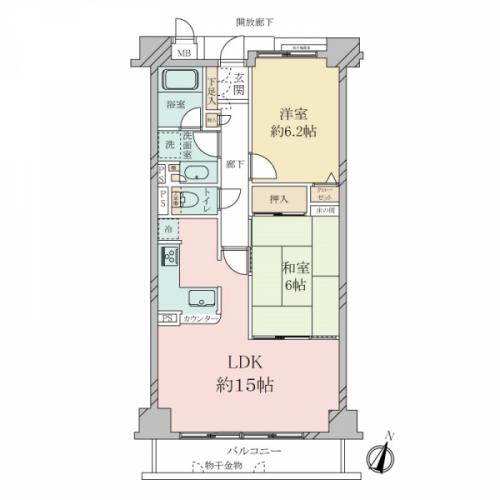 間取り 2LDK 専有面積 60.75m2(18.3坪) 壁芯