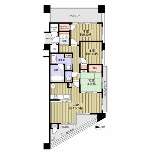 間取り 3LDK 専有面積 75.02m2(22.6坪) 壁芯