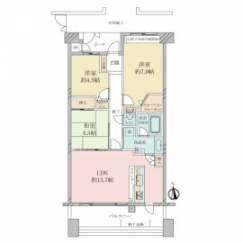 間取り 3LDK 専有面積 70.12m2(21.2坪) 壁芯