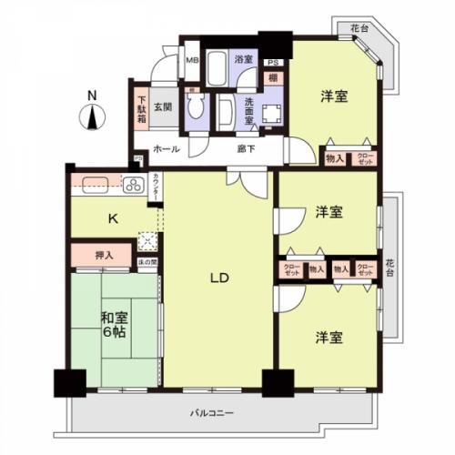 間取り 4LDK 専有面積 86.35m2(26.1坪) 壁芯