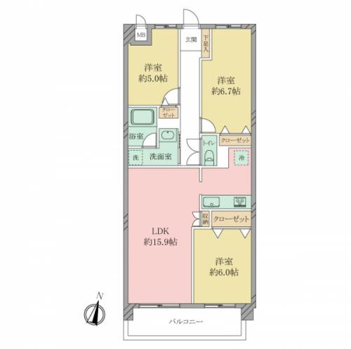 間取り 3LDK 専有面積 73.60m2(22.2坪) 壁芯