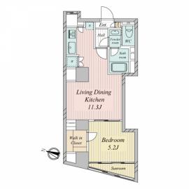 間取り 1LDK 専有面積 47.04m2(14.2坪) 壁芯