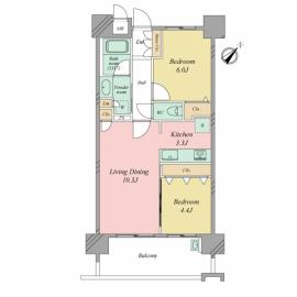 間取り 2LDK 専有面積 55.17m2(16.6坪) 壁芯