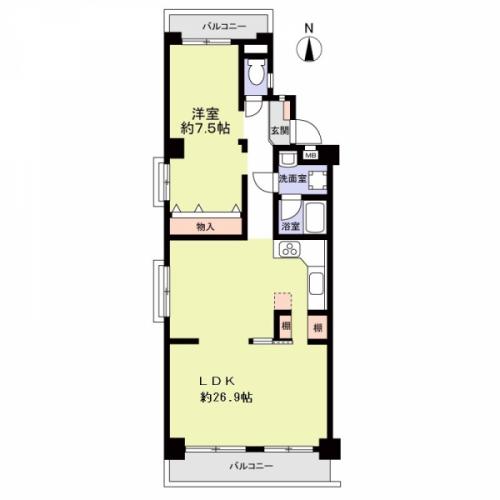 間取り 1LDK 専有面積 69.11m2(20.9坪) 壁芯