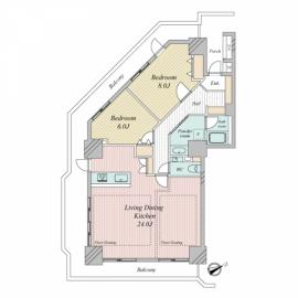 間取り 2LDK 専有面積 85.34m2(25.8坪) 壁芯
