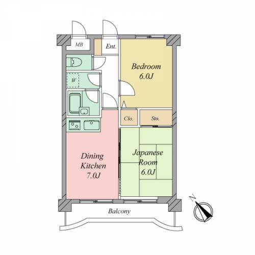 間取り 2DK 専有面積 44.96m2(13.6坪) 壁芯
