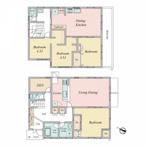 土地面積 182.40m2(55.1坪) 登記簿 建物延面積 134.97m2