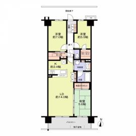 間取り 3LDK 専有面積 79.80m2(24.1坪) 壁芯