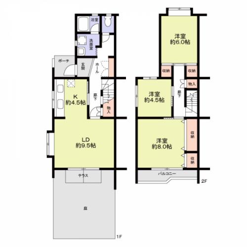 間取り 3LDK 専有面積 87.24m2(26.3坪) 壁芯