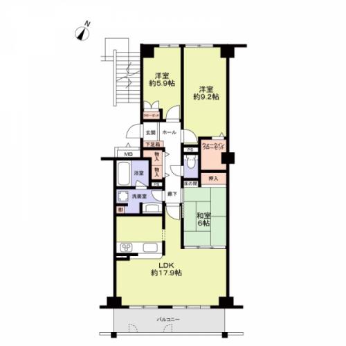 間取り 3LDK 専有面積 90.18m2(27.2坪) 壁芯