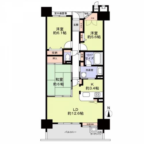 間取り 3LDK 専有面積 73.17m2(22.1坪) 壁芯