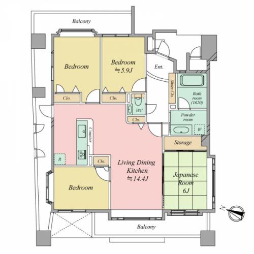 間取り 4LDK 専有面積 93.88m2(28.3坪) 壁芯