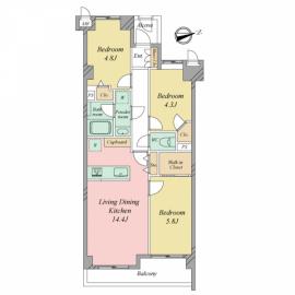 間取り 3LDK 専有面積 62.35m2(18.8坪) 壁芯