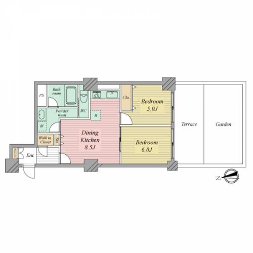 間取り 2DK 専有面積 55.13m2(16.6坪) 壁芯