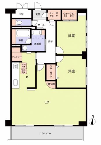間取り 2LDK 専有面積 85.20m2(25.7坪) 壁芯