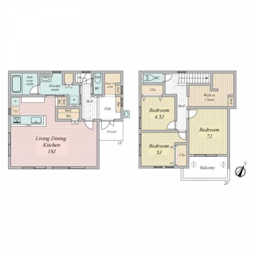 土地面積 142.14m2(42.9坪) 登記簿 別途私道負担19.00m2 建物延面積 104.33m2
