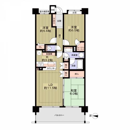 間取り 3LDK 専有面積 71.92m2(21.7坪) 壁芯