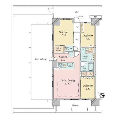 間取り 3LDK 専有面積 70.45m2(21.3坪) 壁芯