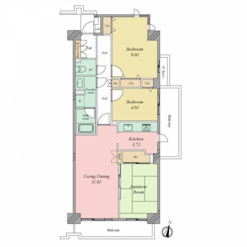 間取り 3LDK 専有面積 83.50m2(25.2坪) 壁芯