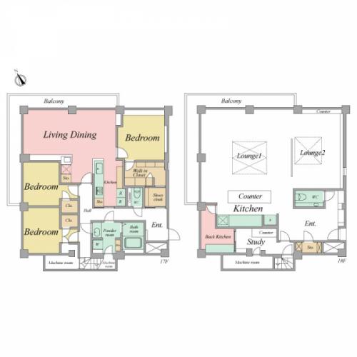 間取り 4LDK 専有面積 253.98m2(76.8坪) 壁芯