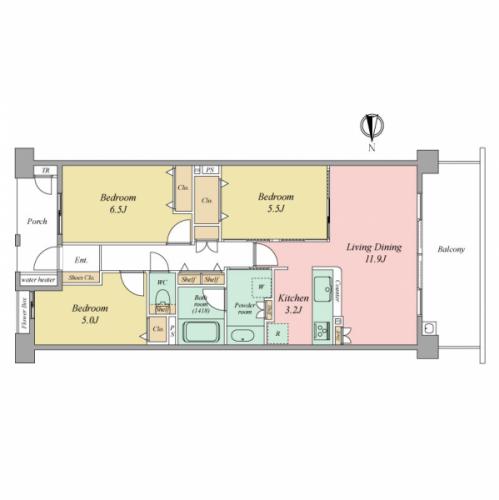間取り 3LDK 専有面積 72.41m2(21.9坪) 壁芯