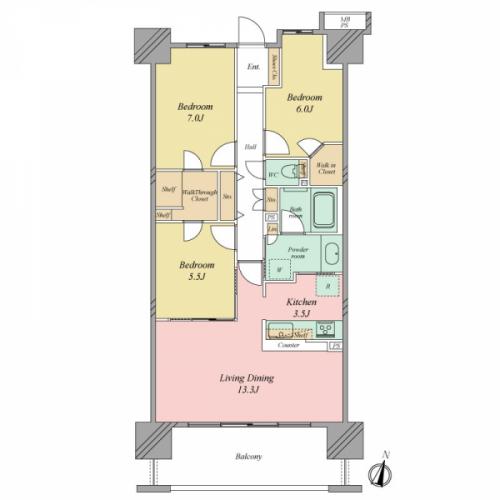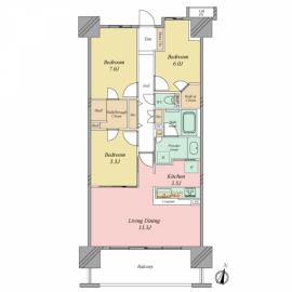 間取り 3LDK 専有面積 80.05m2(24.2坪) 壁芯