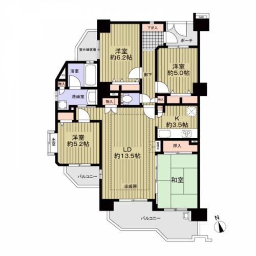 間取り 4LDK 専有面積 87.45m2(26.4坪) 壁芯