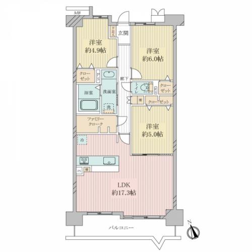 間取り 3LDK 専有面積 78.10m2(23.6坪) 壁芯