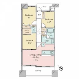 間取り 3LDK 専有面積 68.42m2(20.6坪) 壁芯