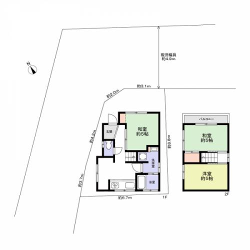 土地面積 49.03m2(14.8坪) 登記簿 建物延面積 50.14m2