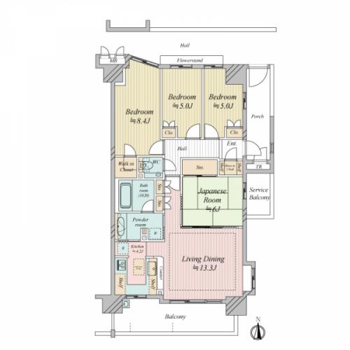 間取り 4LDK 専有面積 91.84m2(27.7坪) 壁芯