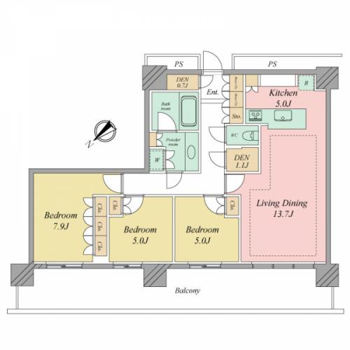 間取り 3SLDK 専有面積 87.92m2(26.5坪) 壁芯