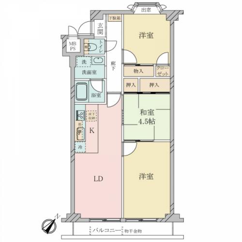 間取り 3LDK 専有面積 64.54m2(19.5坪) 壁芯