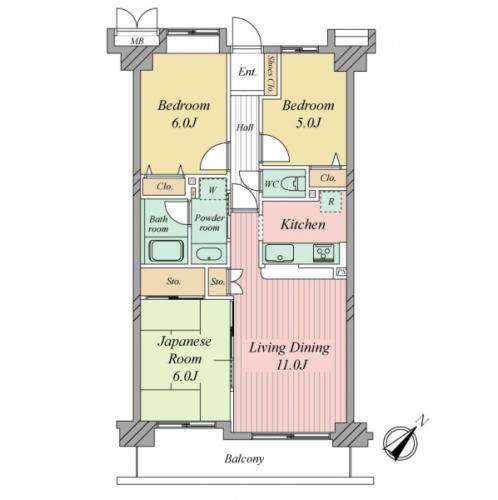 間取り 3LDK 専有面積 67.10m2(20.2坪) 壁芯