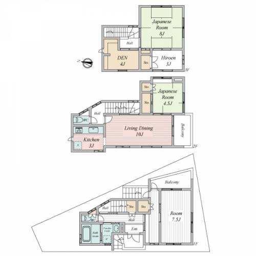 土地面積 74.75m2(22.6坪) 実測 建物延面積 126.79m2