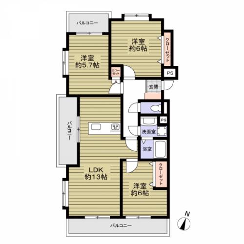 間取り 3LDK 専有面積 70.12m2(21.2坪) 壁芯