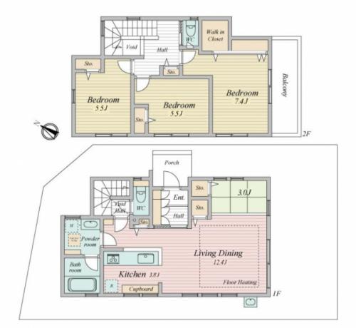 土地面積 112.71m2(34.0坪) 登記簿 建物延面積 93.56m2