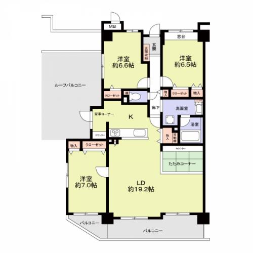 備考 2025年12月 キッチン、浴室、トイレ、壁、床、全室 その他費用等:ルーフバルコニー使用料(月額) 1000円、■ルーフバルコニー付きの3LDK■全居室6帖以上■LD約19.2帖■宅配ボックス付き■オートロック