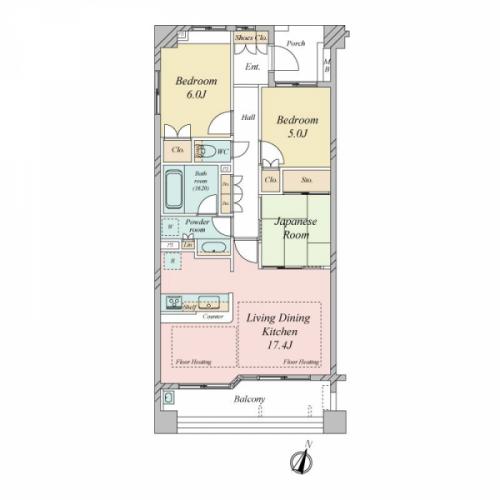 間取り 3LDK 専有面積 75.63m2(22.8坪) 壁芯