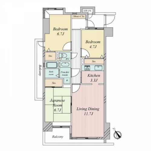 間取り 3LDK 専有面積 73.79m2(22.3坪) 壁芯